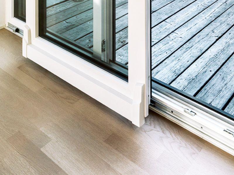- hliníkový prah, ktorý môže byť v jednej rovine s podlahou